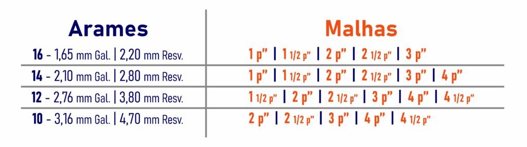 Malha: (3/4″ a 4″)